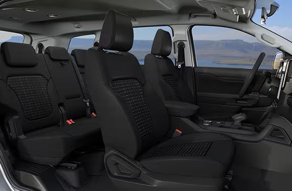 En el interior, la Everest Active ofrece un nivel de confort y tecnología superior. Su cabina está diseñada con materiales de alta calidad, incluyendo asientos tapizados en cuero premium con ajuste eléctrico, calefacción y ventilación, brindando el máximo confort en cada trayecto. El techo panorámico de doble panel permite una mayor entrada de luz, creando un ambiente amplio y relajante para todos los ocupantes.