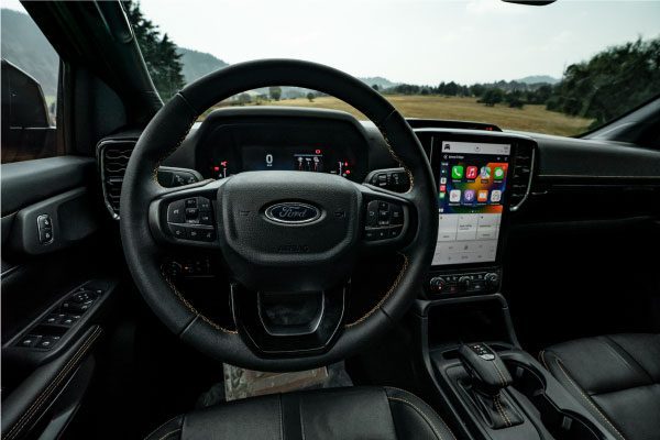 Y por si fuera poco, la Ford Ranger Wildtrak también es confortable. Su cabina tiene espacio para cinco pasajeros y está dotada de asientos de piel calefactables y ajustables eléctricamente, volante deportivo de piel con puntadas, climatizador bizona, pantalla multifunción de 12″ con SYNC 4, navegador, 6 altavoces y DAB, entre otros detalles que harán que tu viaje sea una experiencia única.